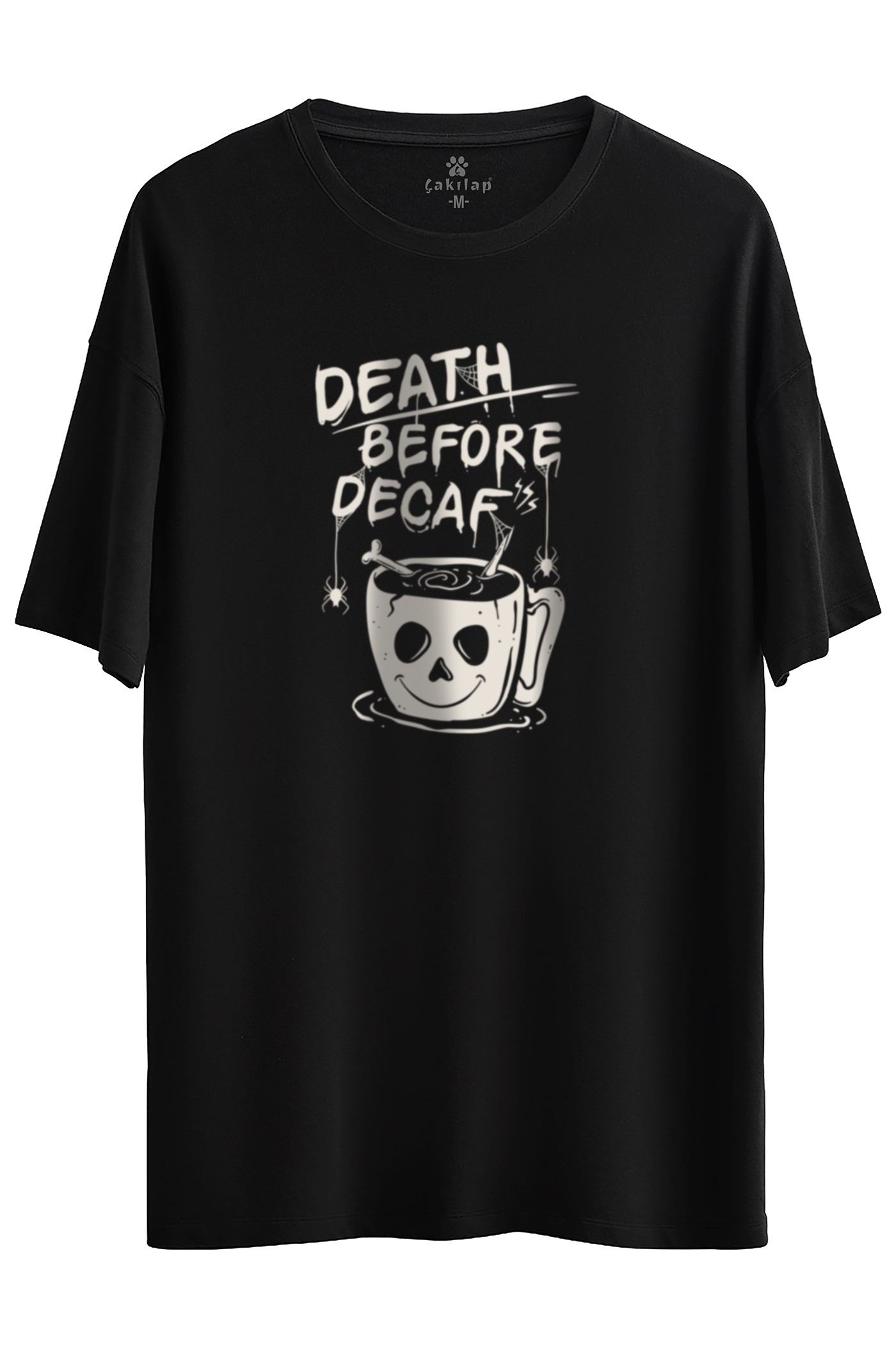 Death Before Decaf Baskılı Oversize Tişört