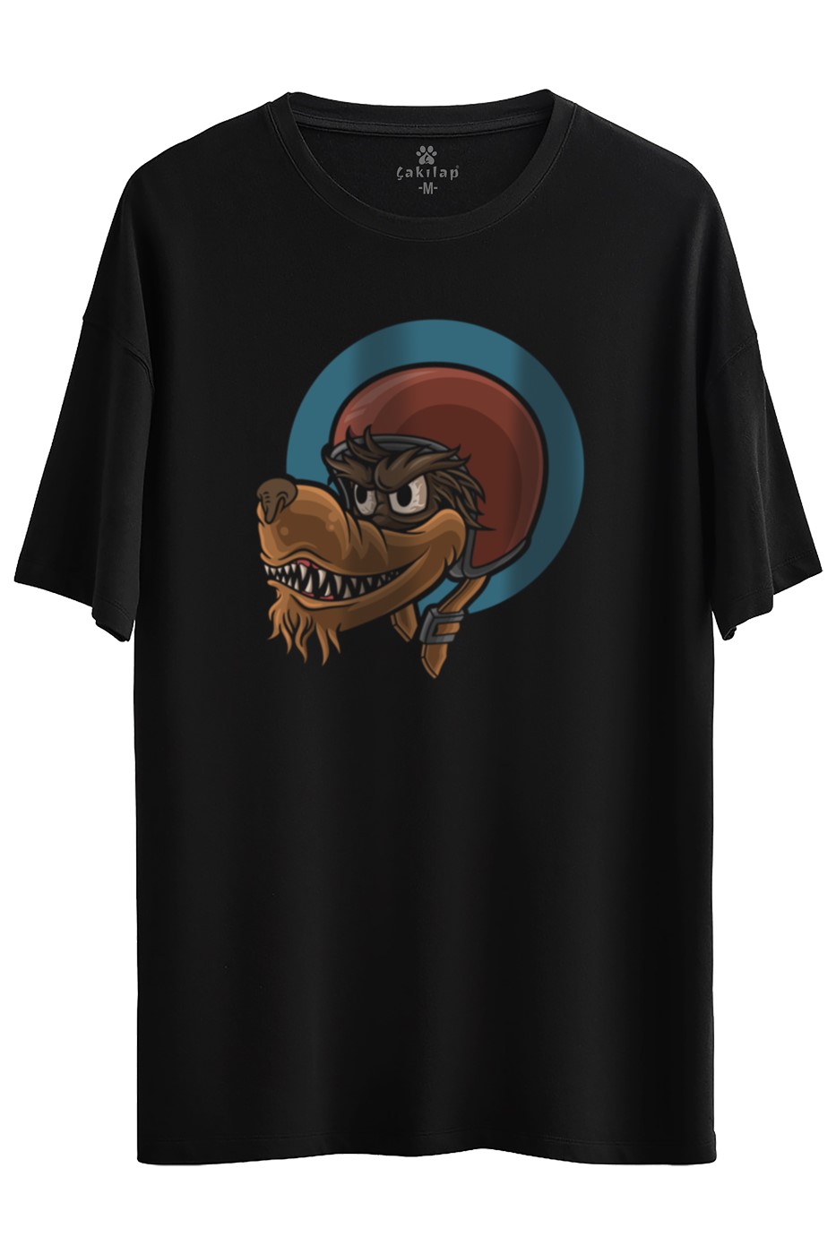 Kasklı Kurt Baskılı Oversize Tişört