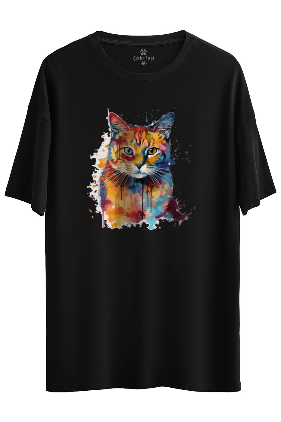 Kedi Baskılı Oversize Tişört