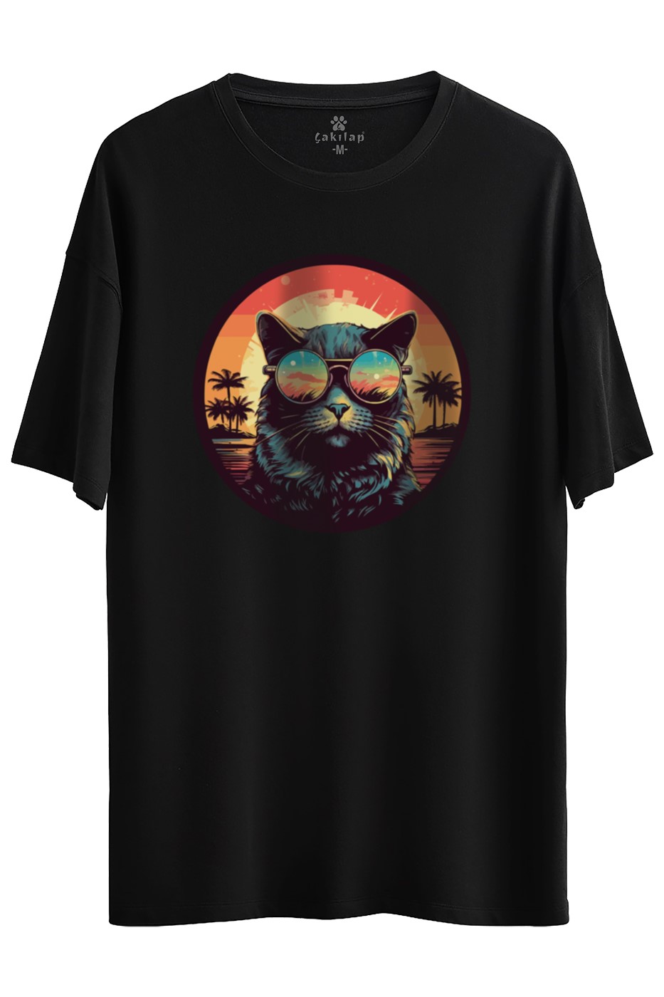 Kedi Baskılı Oversize Tişört