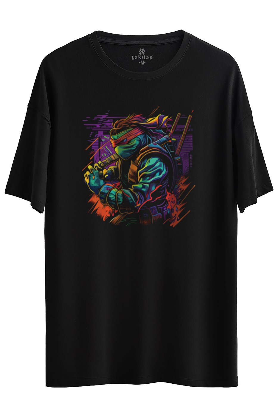 Ninja Kaplumbağa Baskılı Oversize Tişört